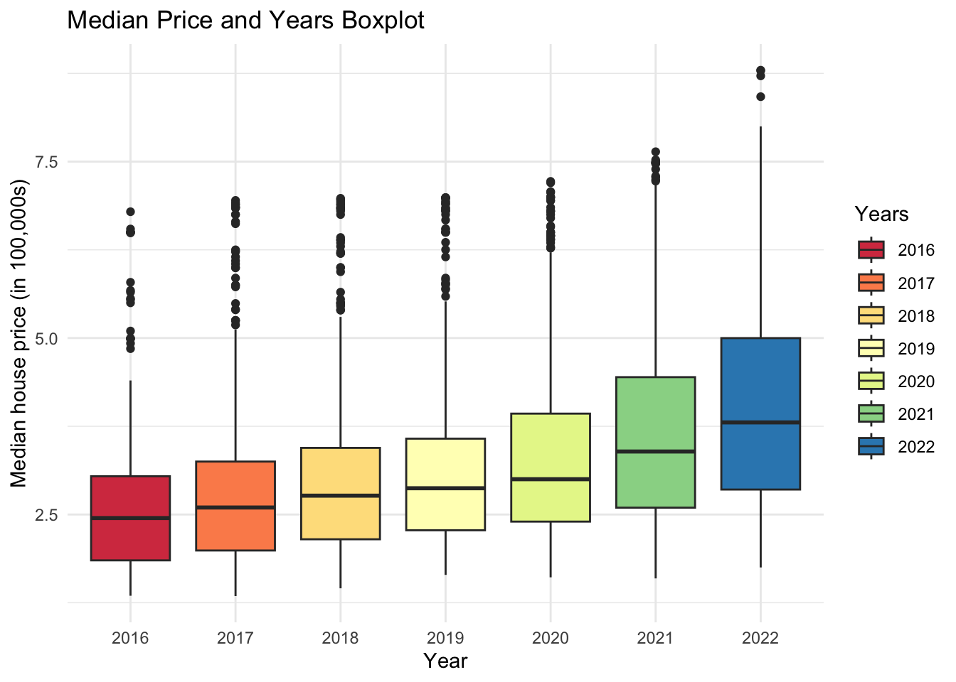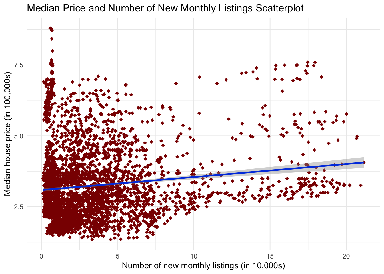 This project aims to examine national real estate data using R with several variables, including potential subgroups based on location or date and relationships between several variables (visually and through an appropriate hypothesis test).